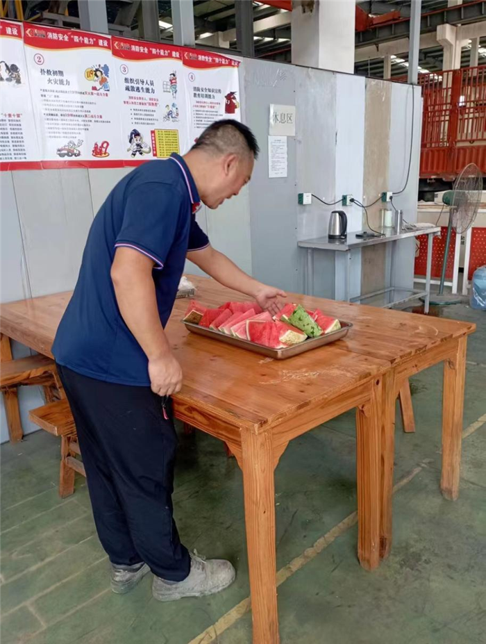 烈日炎炎,热浪滚滚,节节攀升的气温让上班族尤其是一线员工体会到了酷暑的“威力”。为了改善车间生产条件,确保职工平安度夏,羞羞视频软件电梯工会在炎热的夏季的每个工作日为辛勤工作在生产一线的员工送去了西瓜、绿豆汤、莲子汤以及防暑药品,让他们在挥洒汗水的同时感受到一丝丝清凉。