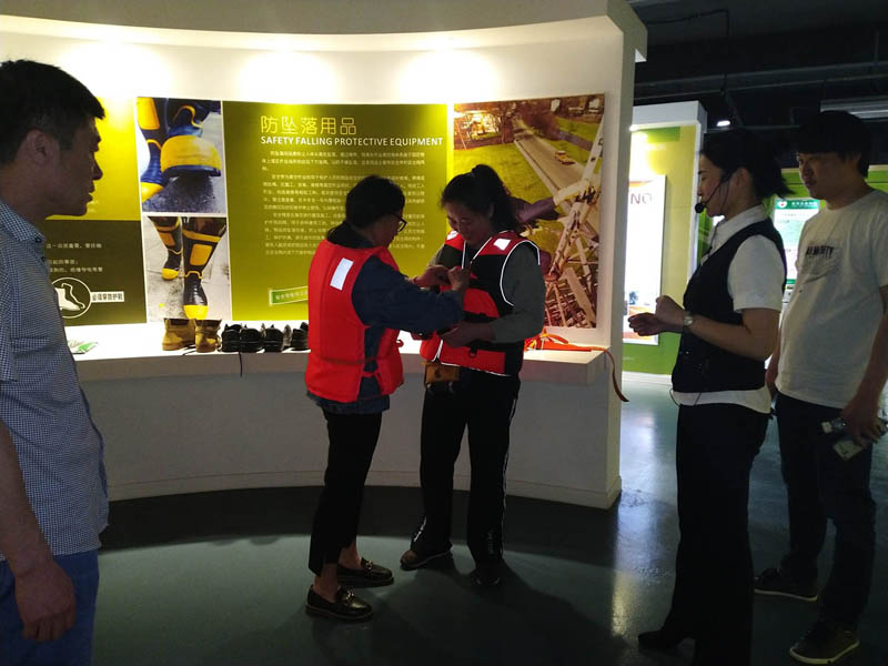 在宣教中心,员工们聆听了家庭用品使用安全知识、交通安全知识、建筑工地安全知识、海事安全知识、车间生产安全知识的讲解,参观了建筑工地的模拟高空环境。在讲解员的带领下,大家纷纷进入地震模拟房间,体验地震时的感觉,学习遇震时的逃生方法,并按照讲解员的要求做好正确的避震姿势;在电梯间,大家学到了被困电梯时的应对方法及电梯下坠时的应对姿势;在模拟校车旁、地铁车厢里,聆听了车辆失火时该如何逃生;员工们还兴趣盎然地跟讲解员学习灭火器的使用方法、给遇险人员施救的方法,还穿起救生衣,向讲解员学到了淡水救生衣与海水救生衣的不同穿着方法,得到了很全面的安全知识技能的学习。