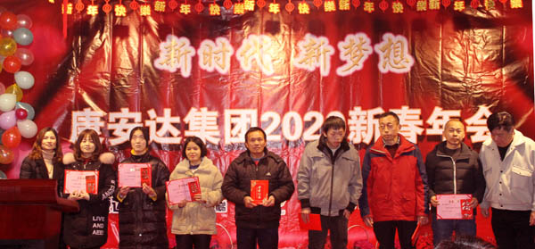 晚会上,公司分别给员工发了员工奖、忠诚奖、特殊贡献奖,并给参加文体比赛的优胜者颁了奖。