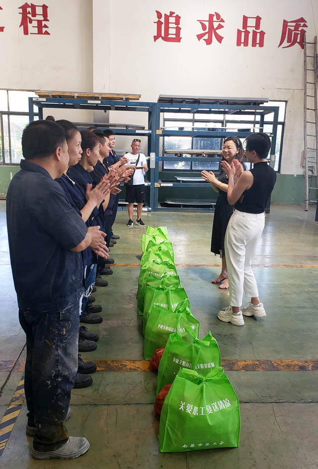 季节虽已入秋,但天气依然炎热无比,818日上午,在火热的太阳下,新建区总工会区副主席张艳华、生产生活部部长万义荣一行数人,冒着酷暑来到羞羞视频软件电梯有限公司车间,给公司一线员工送来了一袋袋慰问品,让工人们在炎热的天气里感受到区总工会领 导送来的阵阵清凉。